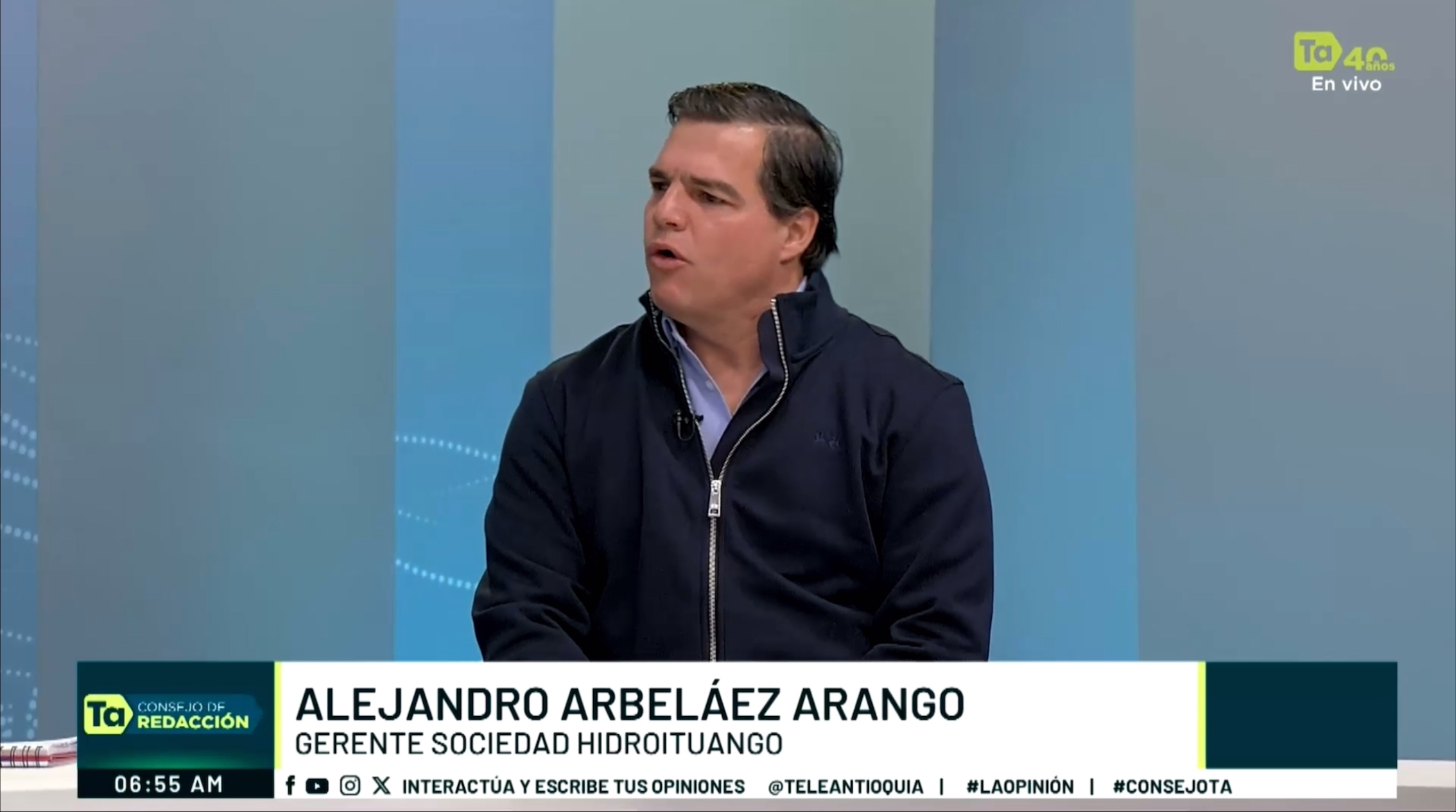 Alejandro Arbeláez Arango, gerente general de HIDROITUANGO S.A., empresa propietaria de la Central Hidroeléctrica Ituango, fue invitado a Consejo de Redacción de Teleantioquia a explicar cómo el proyecto mitiga el riesgo de inundaciones aguas abajo de la presa y evita apagones en Colombia.